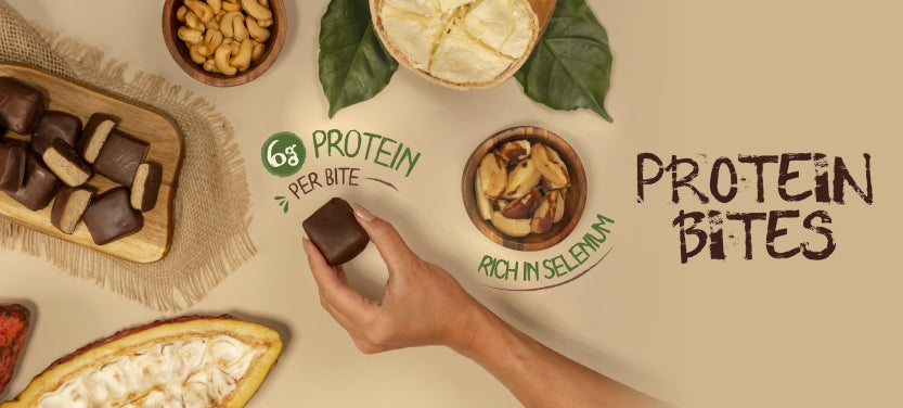 Enjoy the taste of Brazil with our Protein Bites, made with natural Brazilian cocoa, mandioca, and the unique cupuaçu fruit. Combined with cashew and Brazil nuts, these bites are rich in plant-based protein, fiber, and healthy fats. With no added sugars or preservatives, they’re a wholesome snack that provides a nutritious boost for your day.